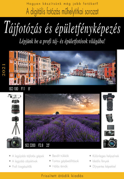 Hogyan készíthetünk fantasztikus fényképeket utazásaink, kirándulásaink során? Az ötödik kiadásban megjelenő kiadvány választ ad erre a kérdésre, miközben bevezet a táj- és épületfotózás rejtelmeibe, megismertet a legújabb trendekkel, fényképezőgépekkel. Könyvünk első részében áttekintjük a bevált táj- és épületfotós fényképezőgépeket, objektíveket, a fotózás közben előforduló buktatókat, de nem feledkezünk meg a kompozícióról sem. Ezután magas szinten foglalkozunk a különböző megvilágítási helyzetekkel, a képek színhangolásával, a drónos felvételekkel, felfedjük az impresszionista stílus és a videóból kivett pillanatképek titkait. A könyv második része a táj- és épületfotós témákat mutatja be részletesen. Eláruljuk, hogy a különböző helyszíneken melyek a leghálásabb témák, azokból milyen módszerrel, kompozícióval hozhatjuk ki a legtöbbet. A recept tehát adott, csak az Olvasó kreativitásán múlik a siker! A 2021-es kiadásban a technikai részeket frissítettük, így vadonatúj eszközökön keresztül mutatjuk be a táj- és épületfotózás gépeit, objektíveit, kiegészítőit.