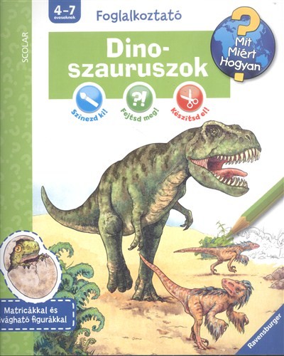 A Ravensburger Mit? Miért? Hogyan? Foglalkoztató sorozatának e kötete a dinoszauruszokkal ismerteti meg az apróságokat. Mik azok a dinoszauruszok? Mikor éltek? Mivel táplálkoztak? Hogyan védekeztek? Miért nincsenek már dinoszauruszok? Színezd ki!, Fejtsd meg! és Készítsd el! a feladatokat megoldva a gyerekek megkapják a választ a kérdésekre, és azt is megtudják, hogyan lehet kövületeket készíteni..