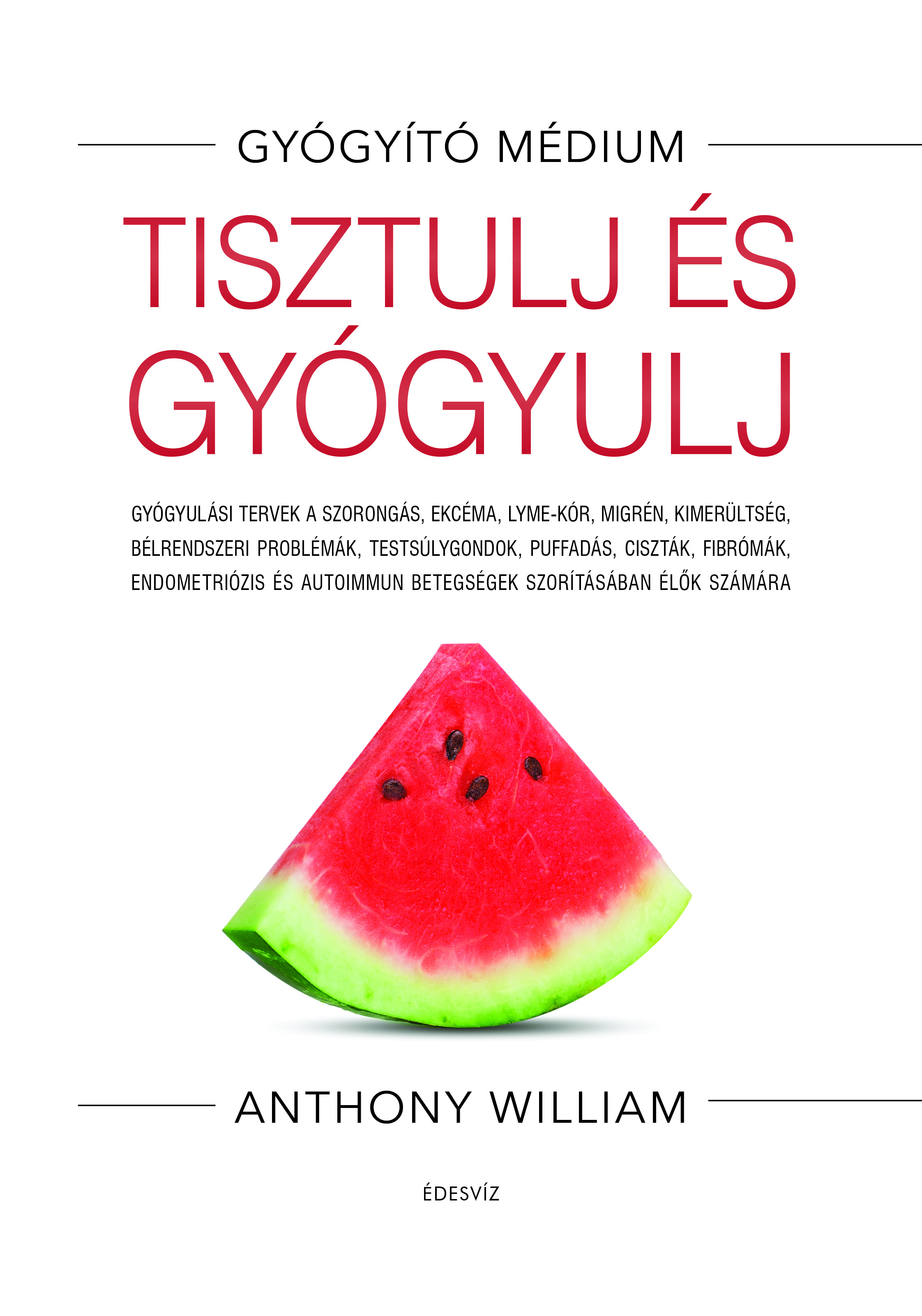 TISZTÍTÓKÚRÁK, MELYEK VALÓBAN AZT CÉLOZZÁK, AMI ELROMLOTT A TESTÜNKBEN. Anthony William, New York Times sikerlistás szerző könyvében minden benne van, amit a tisztítókúráról tudnod kell, hogy átformálhasd az egészségedet – és az életedet. Ha úgy gondolod, hogy semmilyen tisztítókúrára nincs szükséged – ha biztosra veszed, hogy a te szervezetben nem bújhatnak meg méreganyagok – gondold át még egyszer! A mai világban már a születésünk előtt megjelennek az egészségünket fenyegető mérgek és kórokozók, hogy aztán folyamatosan hátráltassanak továbbra is, amikor a mindennapi életünk során találkozunk velük. A tisztítókúra létfontosságú fegyver ezekkel a terhelésekkel szemben – ha tudod, hogyan végezd. Ezért van szükséged erre a könyvre. Anthony William, a Gyógyító médium rengeteg meglátással és információval tömte tele a tisztítókúrák ezen egykötetes forrását a híres kilenc napos 3:6:9 tisztítókúrájával kezdve, melyet aztán speciális egészségi igényeknek megfelelő életmentő protokollokkal – például kórokozók elleni tisztítókúra, reggeli tisztítás és nehézfém-méregtelenítés – fejelt meg. Mit találsz ebben a könyvben: A neked megfelelő tisztítókúra kiválasztásának módját. A tüneteid és állapotod okainak mélyreható feltárását. A tisztítókúrák során alkalmazandó és kerülendő dolgokat, személyre szabással és helyettesítésekkel együtt. Az igazságot olyan trendi témákkal kapcsolatban, mint a szakaszos böjt, a víz- és léböjtölés, a rost, a fehérje, a bulking és cutting módszer, a makrók számolása, valamint a mikrobiom. Útmutatást a tisztítókúra során esetleg alkalmazandó étrend-kiegészítőkkel kapcsolatban. Rengeteg információt méreganyagokról, problémás élelmiszerekről, toxikus nehézfémekről és a vírusoktól való megtisztulásról. Annak fizikai okait, hogy a tisztítókúra érzelmi tapasztalás lehet. Több mint 75 receptet és mintaétrendet a Gyógyító médium tisztítókúrákhoz. Spirituális és lelki támogatást emlékeztetőül arra, hogy a gyógyulás csakugyan lehetséges. „A könyvben bemutatott tisztítókúrák azzal foglalkoznak, ami valóban rossz irányt vett a testünkben, és amelyet egyetlen trendi életmód-megközelítés sem kezelhet” – írja Anthony. – „Légy együttérző magaddal, és tudd, hogy a szenvedésed nem a te hibád. Az, hogy küzdelmes az életed, nem a te hibád. Minden egyes órában és nap mint nap fantasztikus dolgokat érsz el, miközben a könyvben talált hathatós eszközökkel dolgozol a gyógyulásodon. Hiszem, hogy meg tudsz gyógyulni.” Anthony William, a globális zellerlémozgalom elindítója és a New York Times sikerlistákat vezető Csodatévő zeller, Egészséges májműködés, Egészséges pajzsmirigy, Gyógyító ételek és Gyógyító médium című könyvek szerzője azzal az egyedi képességgel született, hogy az Együttérzés szellemével beszélget, aki olyan elképesztően pontos egészségügyi információkkal látja el őt, melyek gyakran megelőzik a jelenkort. Gyógyító médiumként mutatott páratlan pontossága és sikeres gyógyítási aránya világszerte milliók bizalmát és szeretetét nyerte el.