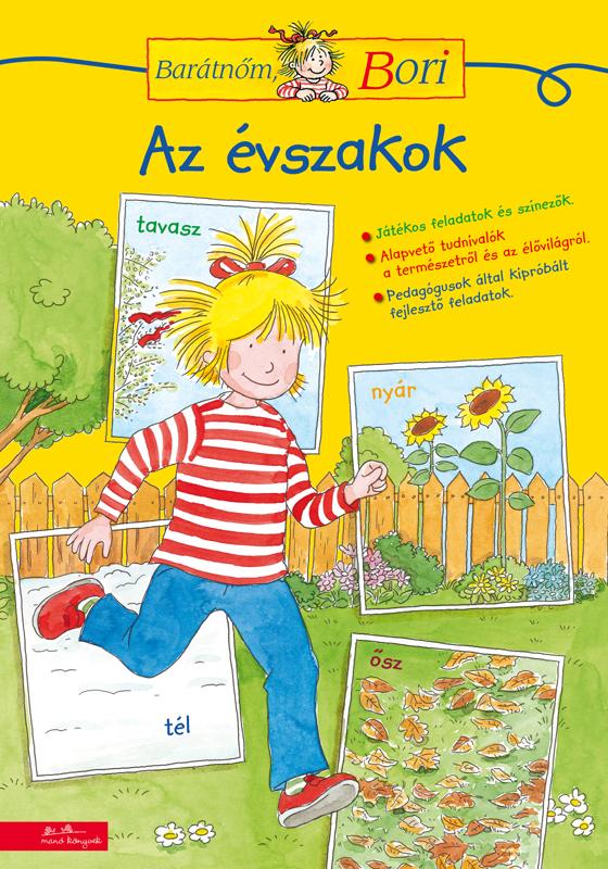A Barátnőm, Bori foglalkoztatófüzet-sorozat ezen kiadványa óvodásoknak vagy iskolai előkészítő csoportba járó gyerekeknek segít ismereteket szerezni az évszakokról, és rendszerezni azokat . A kicsik nyomon követik a természetben zajló változásokat, és a játékos fejlesztő feladatok által ismerkednek a növény- és állatvilággal. Kedvükre színezhetnek, vagy gyűjthetnek faleveleket és terméseket. A gyerekek sok izgalmas kérdésre kapnak választ , és mindezt játékos formában, hogy az ismeretszerezés szórakoztató élmény legyen számukra
