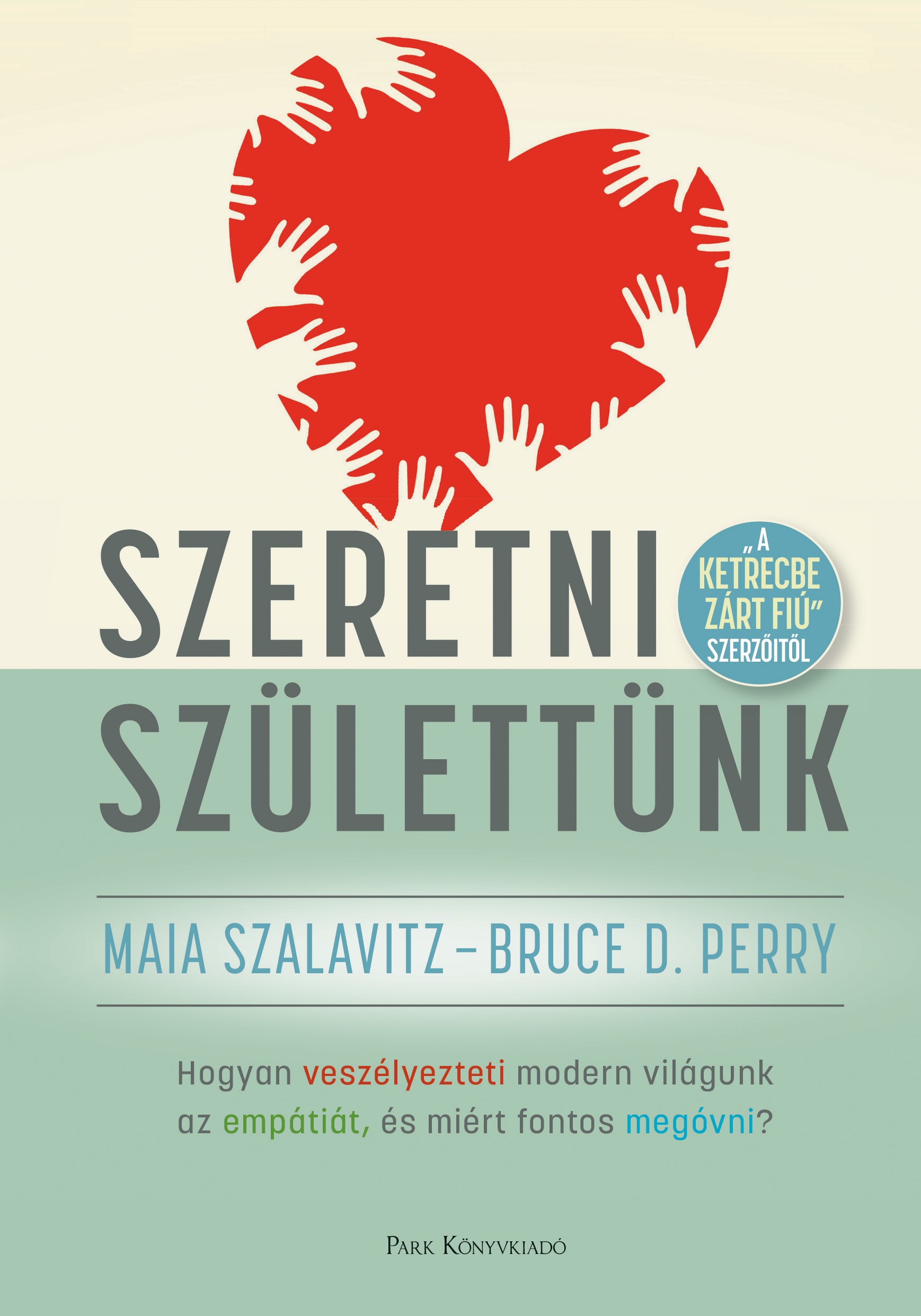 A ketrecbe zárt fiú – és más történetek egy gyerekpszichiáter jegyzetfüzetéből című kötet szerzőinek új könyve. „Megoldja az empátia a világ összes problémáját? Természetesen nem. De kevés probléma oldható meg együttérzés nélkül." Empátia nélkül nincs sem egészséges egyén, sem egészséges közösség. A születés pillanatától kezdve, amikor a csecsemő ujjai ösztönösen belekapaszkodnak a felnőtt ujjaiba, testünk és agyunk bensőséges kapcsolatokat keres – kötődést, amit az empátia tesz lehetővé, a rendkívüli képesség, hogy szeretni tudunk, és meg tudjuk osztani érzéseinket másokkal. Lebilincselő könyvében a nagy sikerű szerzőpáros, Maia Szalavitz újságíró és Bruce D. Perry gyerekpszichiáter arra a kérdésre keresi a választ, hogy miként alakul ki az empátia, miért elengedhetetlen mind az egyéni boldogsághoz, mind a társadalom működéséhez. Rámutatnak, miért veszélyes modern világunk atomizálódása, a technológiai eszköztár és a munkaalapú kultúra hogyan hat empátiánkra, közösségeinkre. A Szeretni születtünk tudományos igényességű kiállás egy emberi interakciókkal és odafigyeléssel teli életért. „Az empátia lehetővé teszi, hogy enyhítsük egymás számára a stresszt, és boldoggá tegyük egymást. Az örömteli élet kulcseleme. És ma több kell belőle, mint eddig bármikor, hogy szembe tudjunk nézni a gyorsan változó intézményrendszer, a sokszínű közösségek és a tönkretett bolygó által támasztott kihívásokkal.”