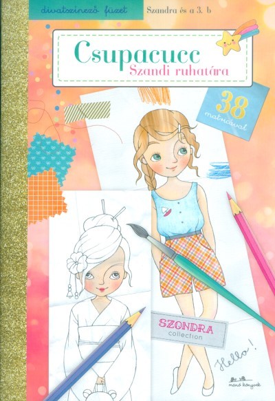 Szia! Szandra vagyok, ez pedig az én divatszínezőm! Most már nem csak filmsztárnak, hanem modellnek is érezhetem magam. Tervezd meg, hogy mit viseljek a suliban, egy buliban, vagy színházban, és segíts, hogy a strandon is divatos lehessek! Színezz, ragaszd fel a 38 matricát, és szórakozz remekül a Csupacuccal! Kalandra fel! Szandraa
