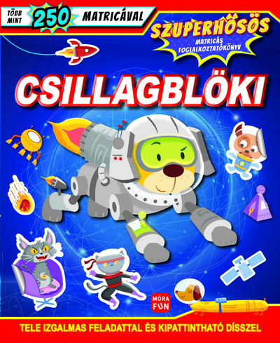 Hasíts az űrben Csillagblökivel ebben a földöntúli matricás foglalkoztatókönyvben. Számos izgalmas feladvány, több mint 250 matrica és kipattintható elemek: a könyv órákra leköti az ifjú szuperhősöket. Elkészítheted Csillagblöki szupermenő álarcát is!