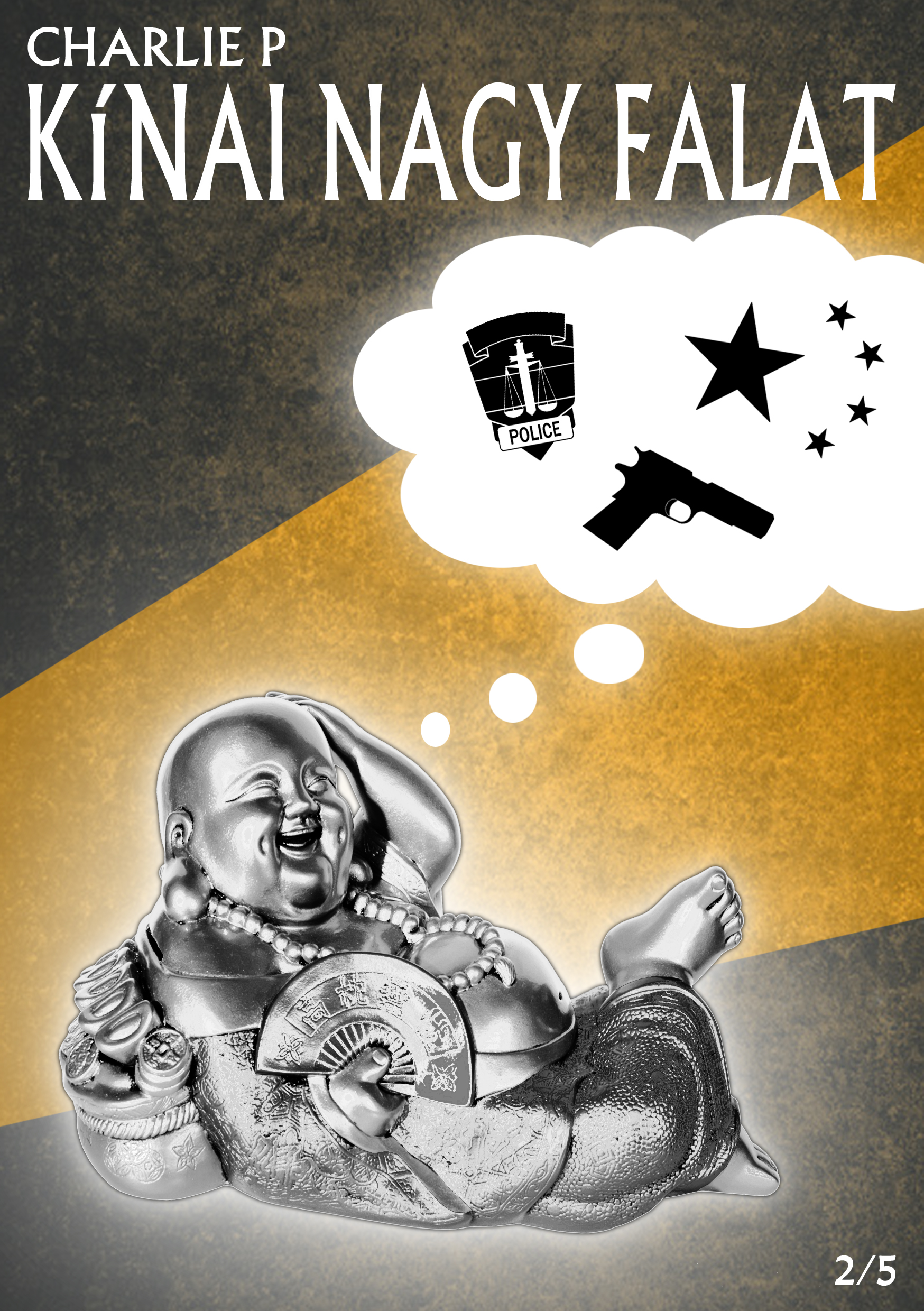 Három jóbarát, akik közül egy normális, kettő viszont nem. A második kerületi kínai vegyeskereskedés főnöke eltűnik. Az üzletben dolgozó Karesz és két barátja nem tudja hová, mint ahogy azt sem, miért kezd el hirtelen mindenkit érdekelni egy értéktelennek látszó Buddha szobor. Egy tinédzser tolvaj, egy kínai verőember és persze egy gyönyörű nő. Hova tűnt Ming úr, és mi a rejtélyes relikvia titka? A kompánia mindenesetre most egy rendőrautó hátsó ülésén próbálja feldolgozni az eseményeket, de a fakabátok nem azok, akiknek látszanak. El lehet szökni előlük, de ha a kínai maffia ad egy visszautasíthatatlan ajánlatot, azt nem lehet visszautasítani. A döntés egyszerű: vagy segítenek, vagy a rokonságuk bánja. Hőseink nem gengszterek, de van remény, segítségükre lesz egy bájos tolvajhölgy. A Kínai Nagy Falat hamisítatlan modern krimi a klasszikus ponyvairodalom ismerős humorával tálalva. Az ismerős helyszíneken játszódó történetben a szövevényes rejtély épp olyan fontos, mint a csattanos pofonok és az öblös poénok. A kisregényt Rejtő Jenő és Nagy Károly könyvei, valamint napjaink bűnügyi sztorijai ihlették. A szerző Charlie P. civilben gazdasági újságíróként keresi a kenyérrevalót. Fennmaradó idejét igyekszik családjával tölteni, kislánya július végén született. Legkedvesebb hobbija az olvasás, de a zenélést sem veti meg, több amatőr rockbandában is dobolt már.