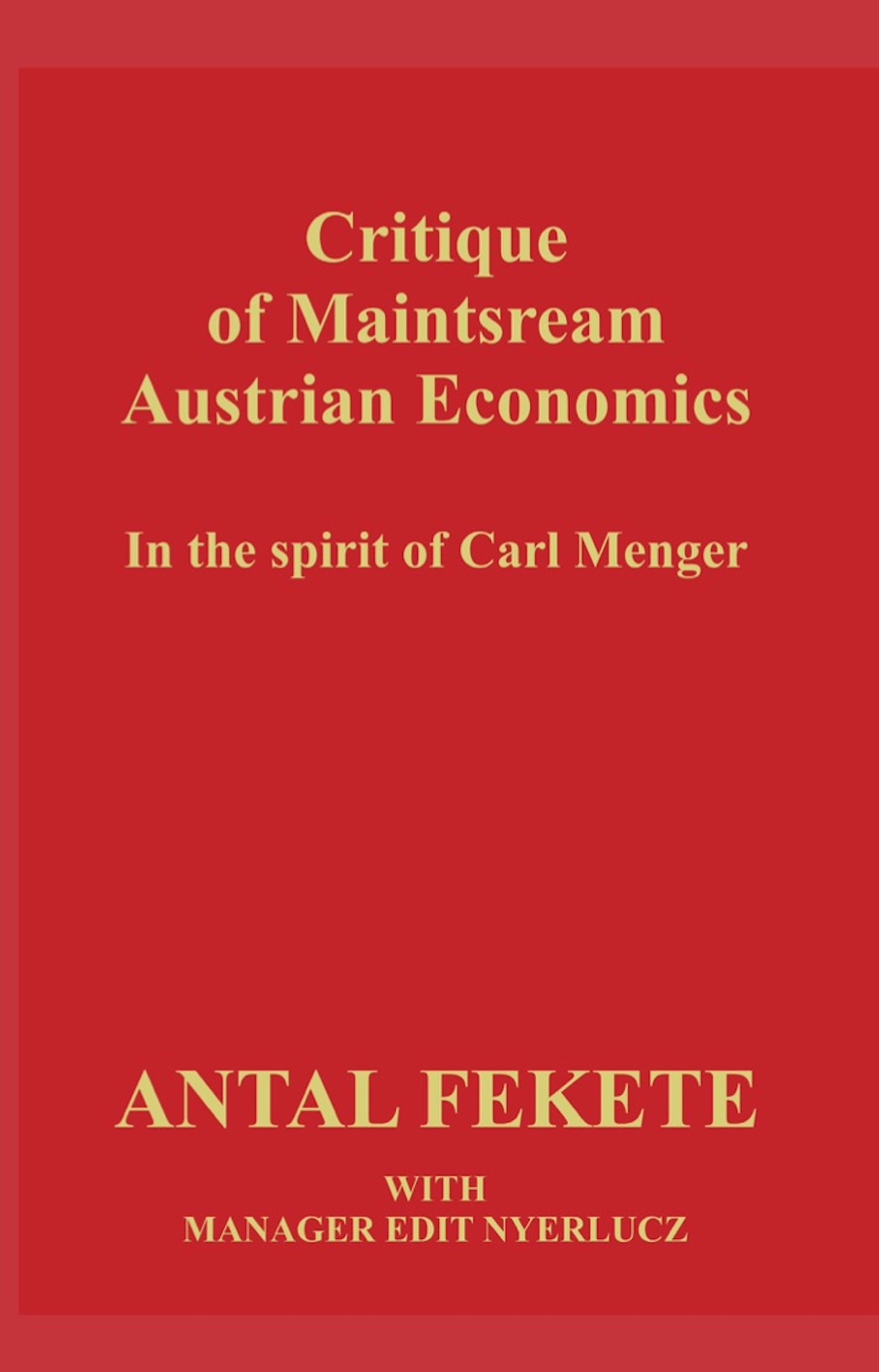 Product Description In his Critique of Mainstream Austrian Economics, math professor Antal Fekete concisely formulates a number of arguments, not so much against Austrian Economics, but rather in favour of them. His critique ought to be interpreted as a way of fortifying and improving on Carl Menger and Ludwig von Mises and their concepts, heterodox as they were in Central Europe, before World War I. Some arguments take position against Mises who seemed locked into conclusions, inspired by unfortunate assumptions like the Quantity Theory of Money. Overcoming these limitations improves coherence in economic theory. The title should not fool the reader, the arguments are crafted against those who took Menger and Mises and hammered their concepts forcefully into mainstream of economic science. Whatever their motives, their move stunted independent development of Austrian Economic thinking. Antal Fekete sets out to correct this unfortunate situation. He feels this work should be the beginning, not the end, of a renewal in Austrian economic thinking.