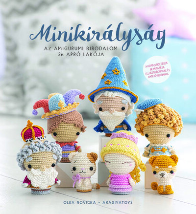 Isten hozott a Minikirályságban! Olka Novicka tervező (AradiyaToys) az amigurumi iránt érzett szenvedélyét most 36 minifigurán keresztül osztja meg veled. A király és a királynő fergeteges horgolós mulatságot rendez. A kikiáltófiú az egész királyságban kidobolja az eseményt. A csillagász persze tudja, hogy te is eljössz, ez meg volt írva a horgolt csillagokban. Reméljük, hogy az udvari bolond és a tündér sem csinál nagy kalamajkát a fonalaiddal. A herceg hűséges lovagja és bájos hercegnő testvérei kíséretében meglátogatja a falubelieket. Tarts velük te is! Horgold életre az egész birodalmat! Készítsd el és fedezd fel ezt a nyüzsgő kis királyságot! Valamennyi figura megáll a maga lábán (pontosabban a talpán), így tökéletes játékok lehetnek a kis álmodozóknak. A figurák frizurái és kalapjai tetszés szerint variálhatók, így még egyedibb karaktereket alkothatsz saját amigurumi birodalmadhoz.