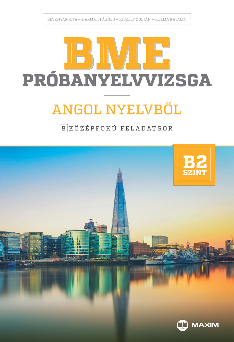 A kötet bemutatja a BME vizsgaközpont általános egynyelvű angol középfokú (B2 szintű) vizsgáját, és nyolc-nyolc teljes, írásbeli és szóbeli feladatsort bocsát a leendő vizsgázók rendelkezésére. A feladatsorok hűen követik az éles vizsga felépítését. A kötet szerzői a BME Nyelvvizsgaközpont tapasztalt vizsgáztatói.