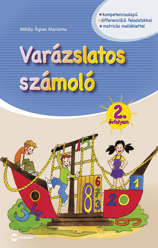 A Varázslatos számoló 2. évfolyam című gyakorló számtani alapokra helyezve fejleszti a biztonságos szám- és műveletfogalomra épülő számolási készségeket. A kiadvány célja a matematikai készségek, képességek gyakoroltatása, a logikai gondolkodás fejlesztése, illetve a megszerzett matematikai tudás rögzítése, elmélyítése. Az összegyűjtött matricákból egy a matematikához kapcsolódó izgalmas puzzle-t állíthatnak össze a gyerekek, amely a tantárgy megszerettetését is elősegíti.
