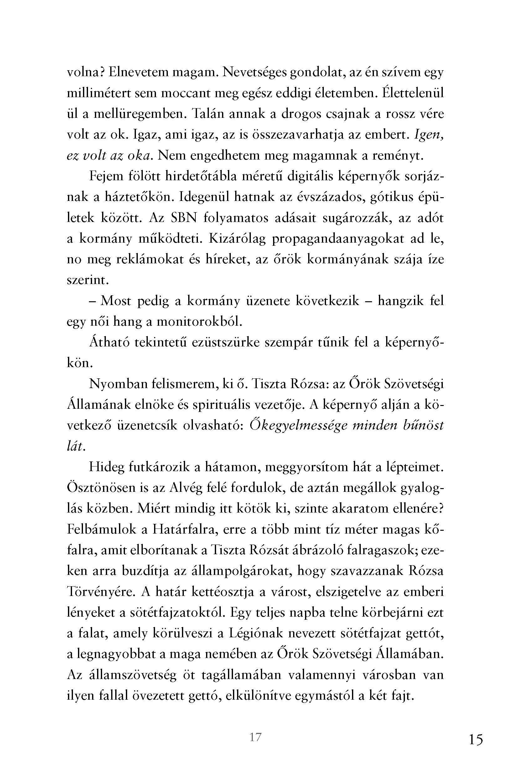 „Elizabeth Richards saját világot teremtett, fantasztikus előtörténettel, hihetetlen lényekkel és lehangoló, ám sivárságában is magával ragadó környezettel. Kötelező olvasmány ez a romantikus regények rajongóinak, de a negatív utópiák kedvelői sem tudják majd letenni. Vegye kézbe mindenki, aki jót akar olvasni! Ötcsillagos könyv!”