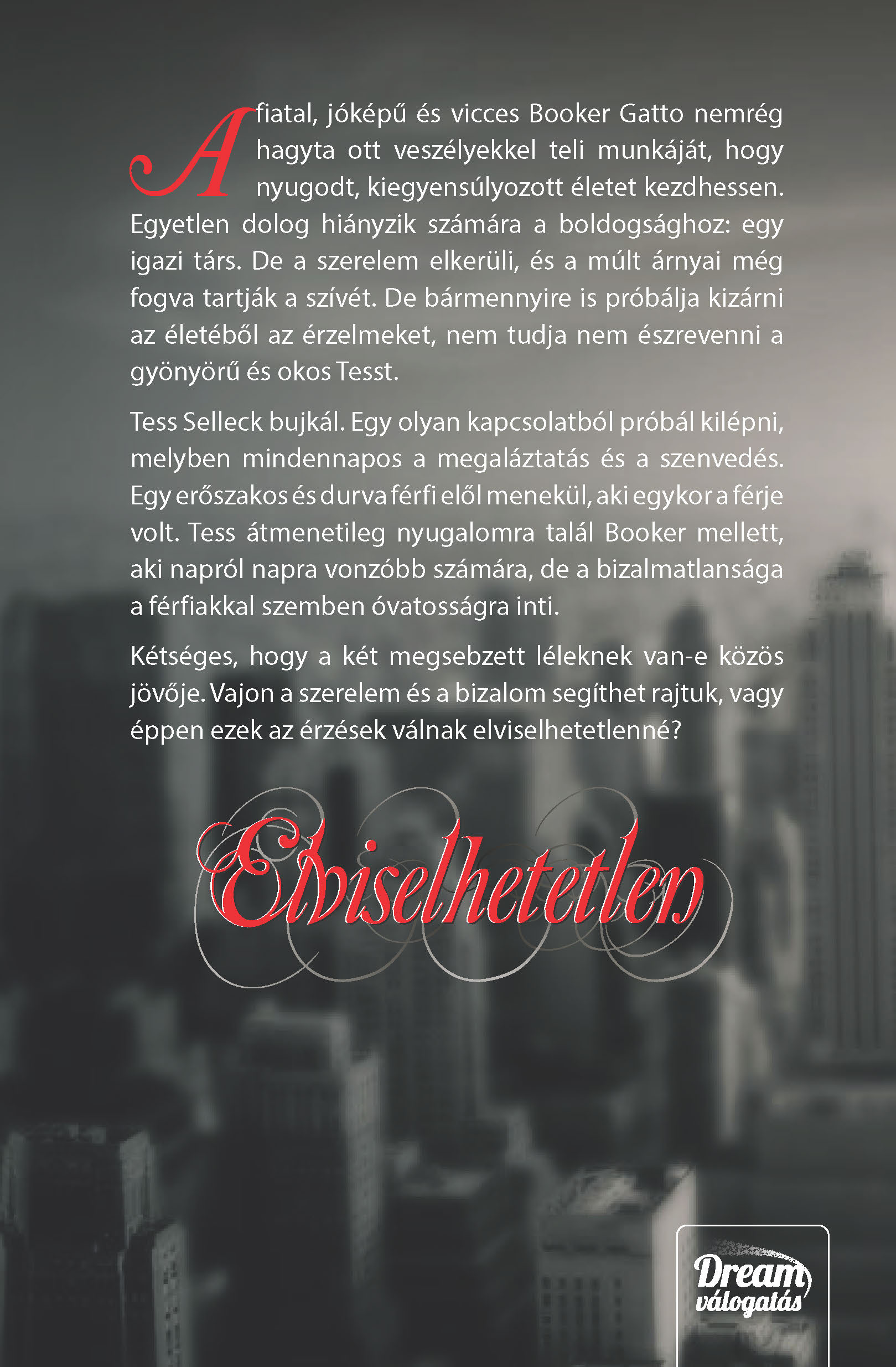 A fiatal, jóképű és vicces Booker Gatto nemrég hagyta ott veszélyekkel teli munkáját, hogy nyugodt, kiegyensúlyozott életet kezdhessen. Egyetlen dolog hiányzik számára a boldogsághoz: egy igazi társ. De a szerelem elkerüli, és a múlt árnyai még fogva tartják a szívét. De bármennyire is próbálja kizárni az életéből az érzelmeket, nem tudja nem észrevenni a gyönyörű és okos Tesst. Tess Selleck bujkál. Egy olyan kapcsolatból próbál kilépni, melyben mindennapos a megaláztatás és a szenvedés. Egy erőszakos és durva férfi elől menekül, aki egykor a férje volt. Tess átmenetileg nyugalomra talál Booker mellett, aki napról napra vonzóbb számára, de a bizalmatlansága a férfiakkal szemben óvatosságra inti. Kétséges, hogy a két megsebzett léleknek van-e közös jövője. Vajon a szerelem és a bizalom segíthet rajtuk, vagy éppen ezek az érzések válnak elviselhetetlenné?
